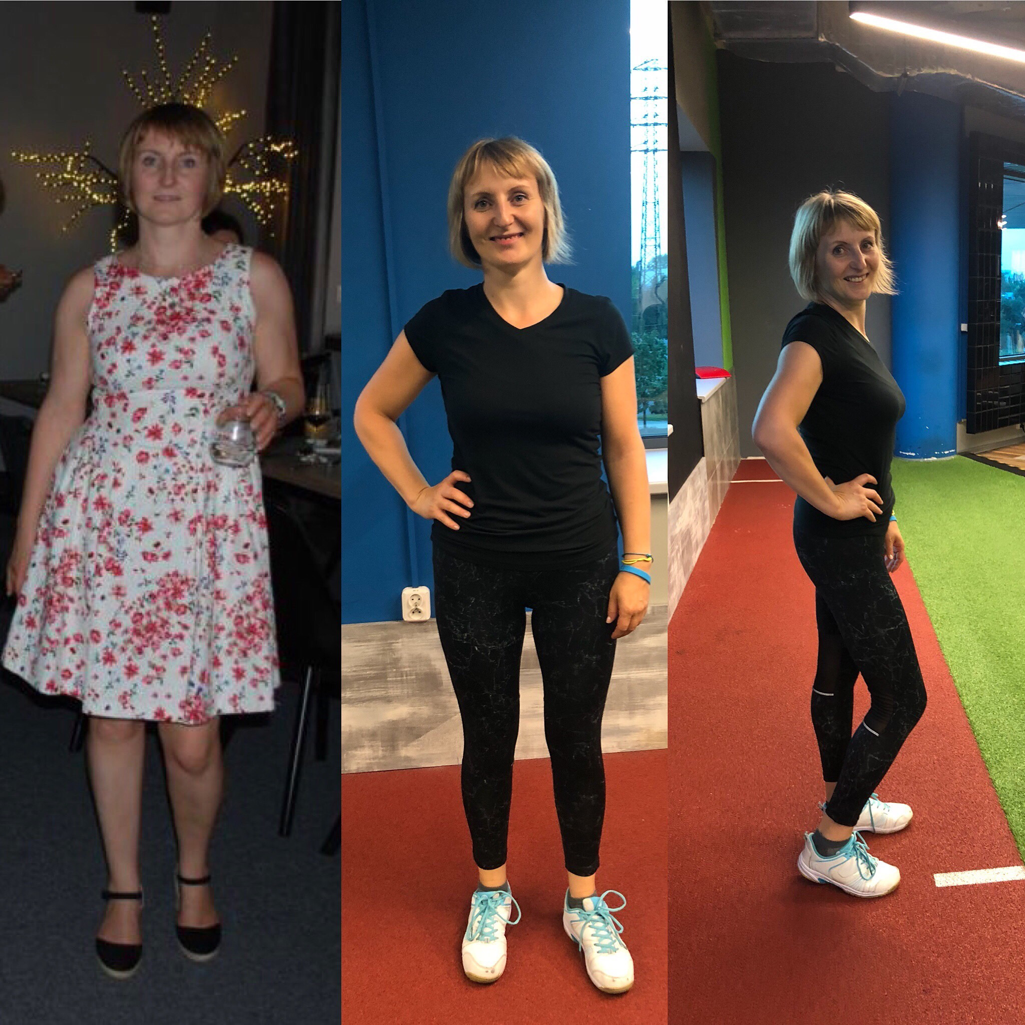 „Swoją przygodę z siłownią rozpoczęłam w styczniu 2018. Jak również zajecia z trenerka. Moja waga wyjściowa to 72. Obecnie 57.